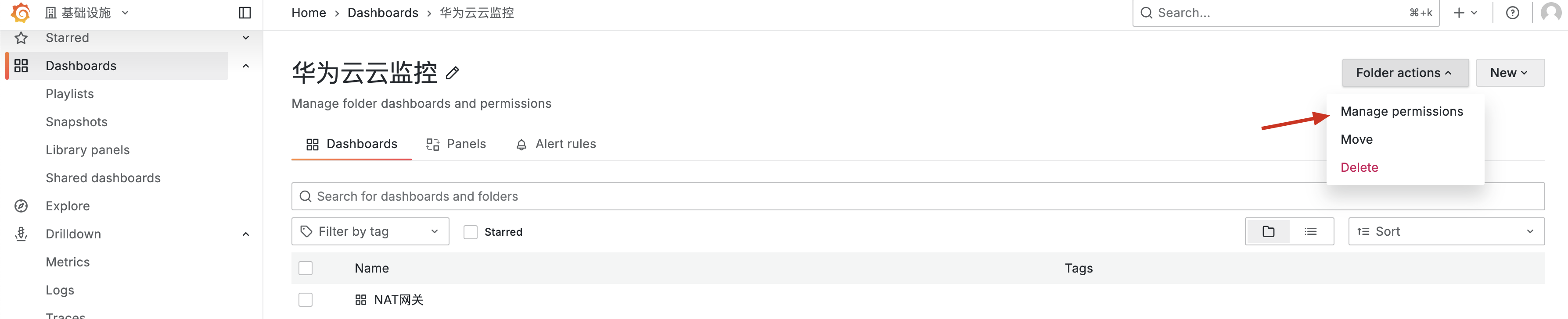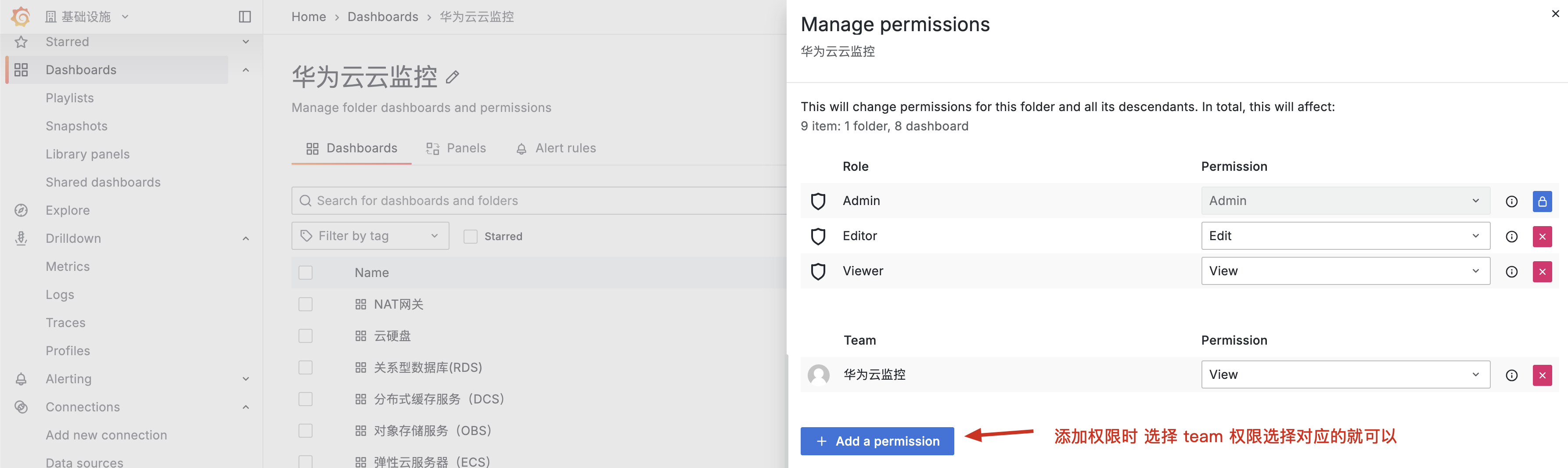 Grafana Dashboard Flod权限配置