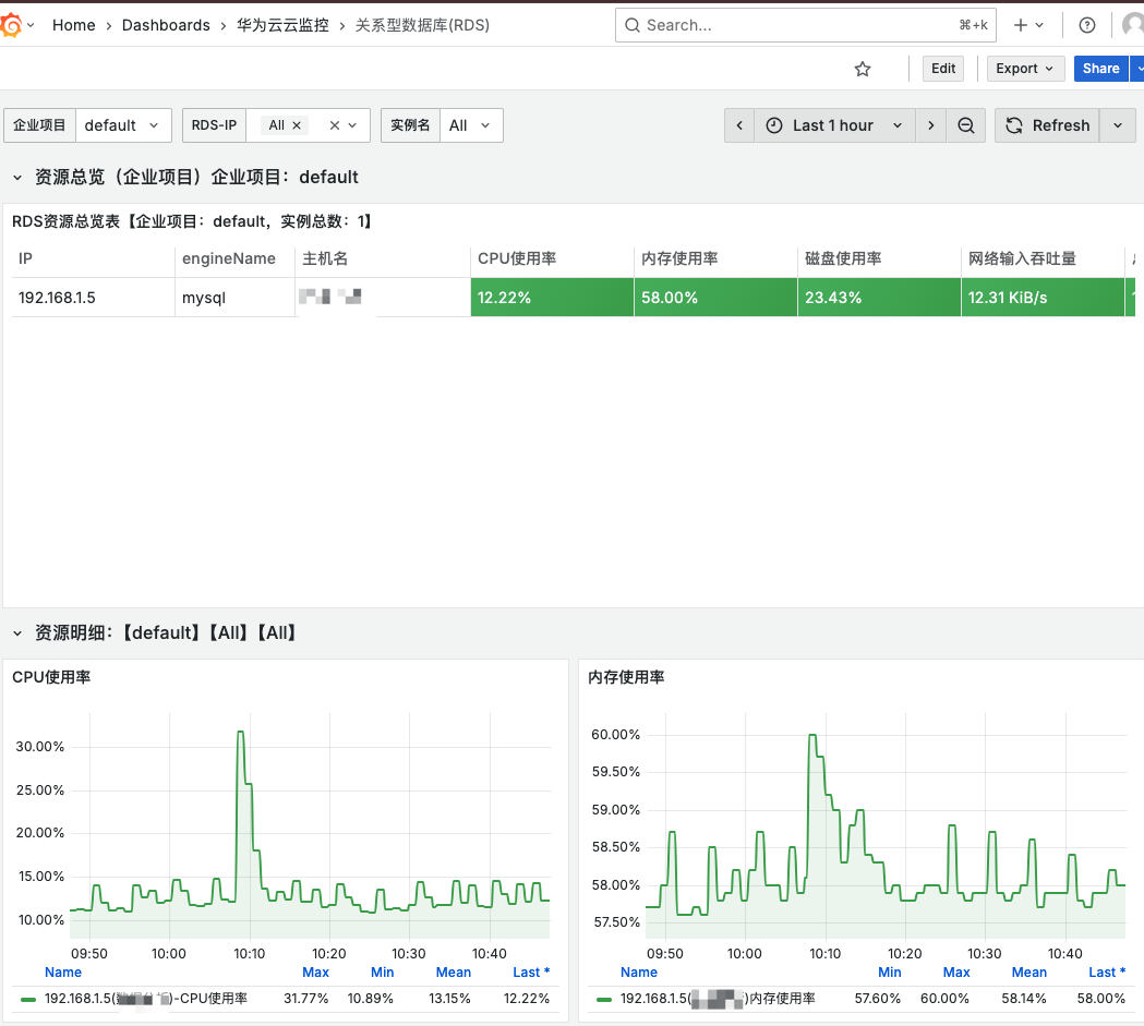 华为云云产品Grafana Dashboard模块地址: https://github.com/huaweicloud/cloudeye-exporter/tree/br_release_sdk_v3/grafana_dashboard/templates ,选择你要的template.json再导入到Grafana中,即可看到效果